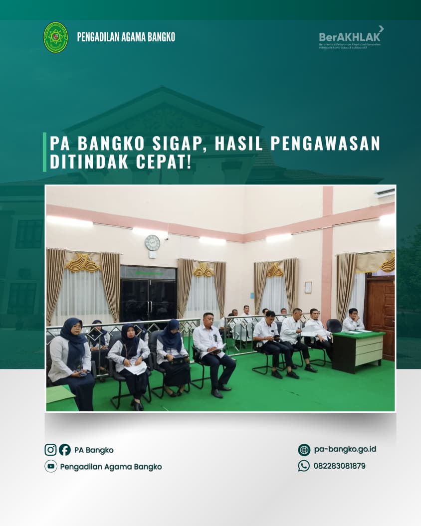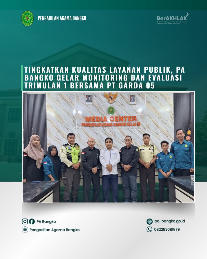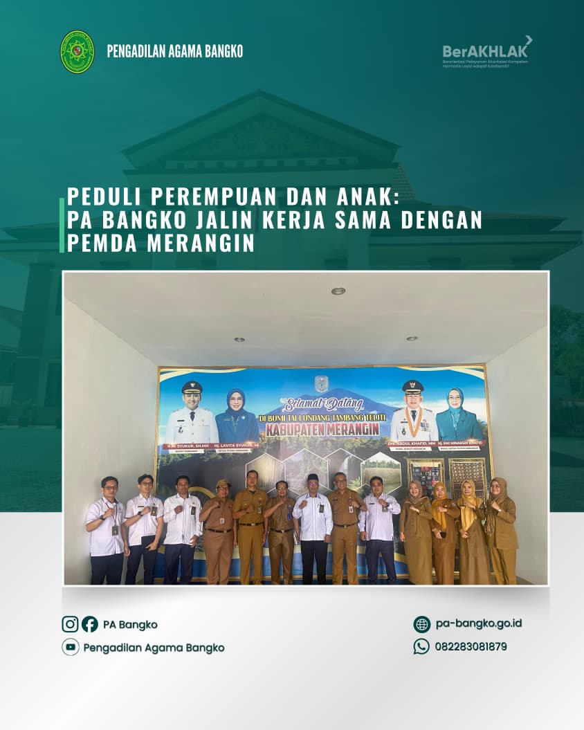 Senin, 20 April 2026, Pengadilan Agama Bangko hadiri rapat koordinasi terkait perampungan MoU bersama Pemerintah Daerah Kabupaten Merangin dalam rangka Pemenuhan Hak-hak Perempuan dan Anak Pasca Perceraian serta Pencegahan Perkawinan Anak. Kegiatan ini bertempat di Ruang Rapat H. Moh. Syukur pada Kantor Bupati Merangin.